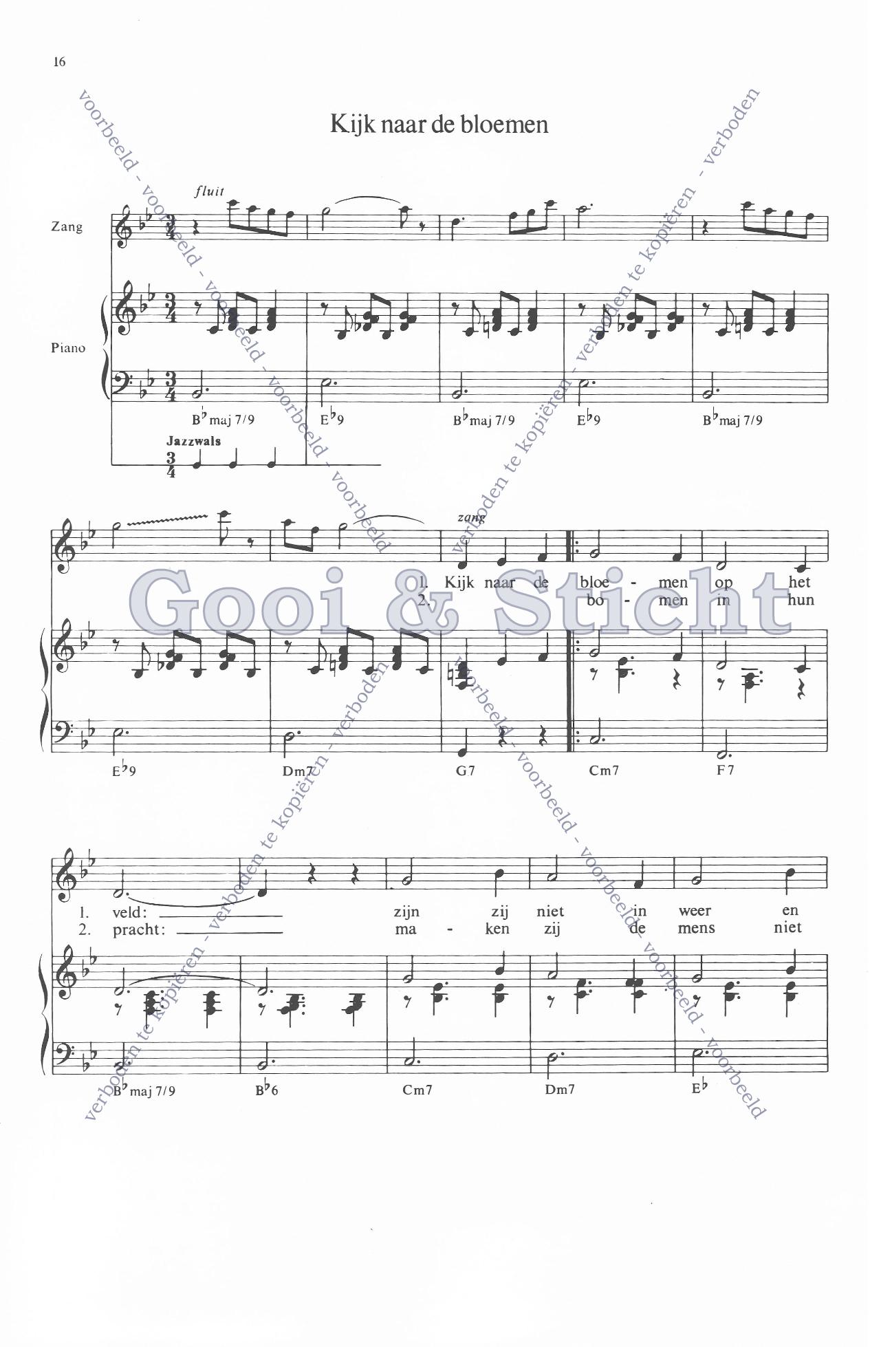 | Aanhef (eerste regel) | Kijk naar de bloemen |