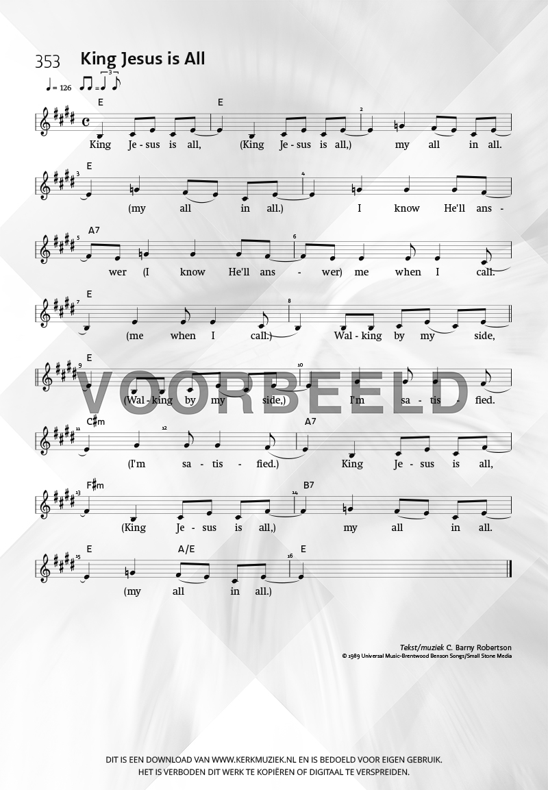 | Aanhef (eerste regel) | King Jesus is All |