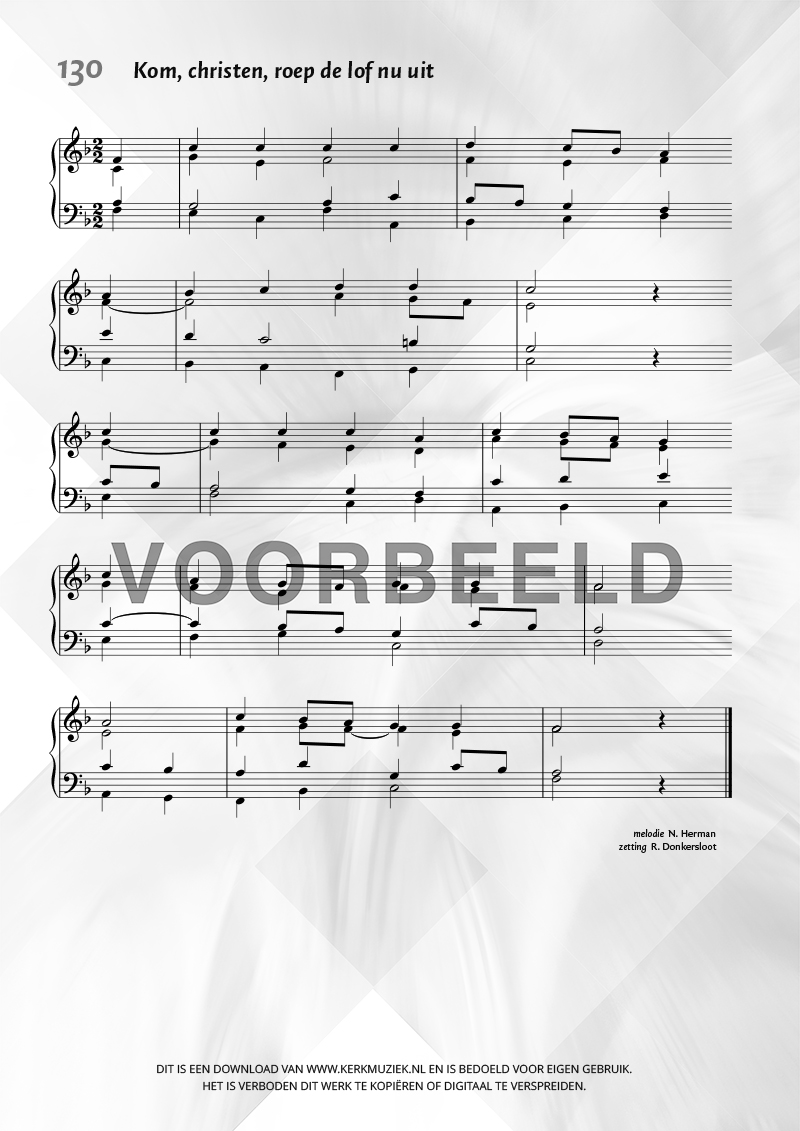| Aanhef (eerste regel) | Kom, christen, roept de lof nu uit |