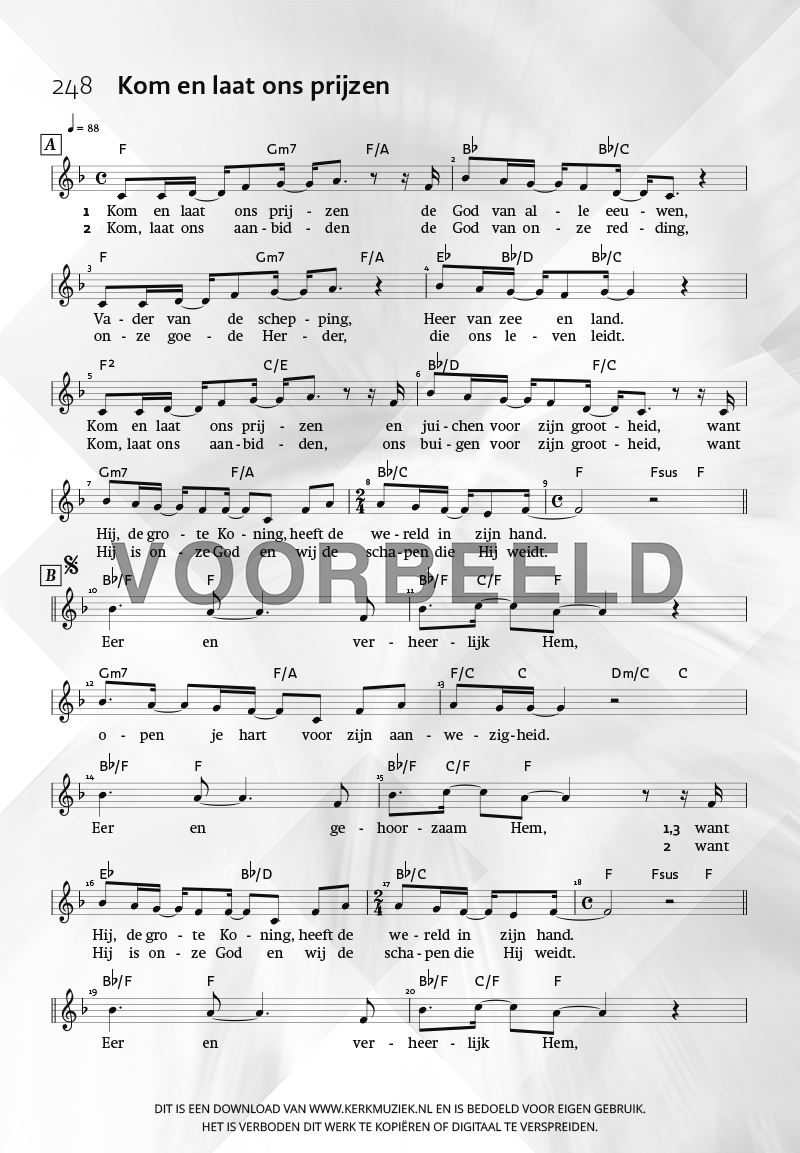 | Aanhef (eerste regel) | Kom en laat ons prijzen |