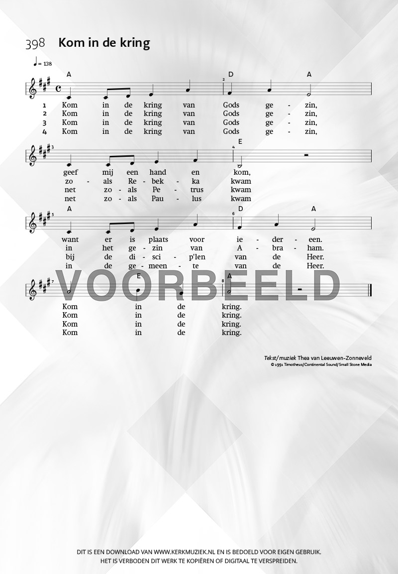 | Aanhef (eerste regel) | Kom in de kring |