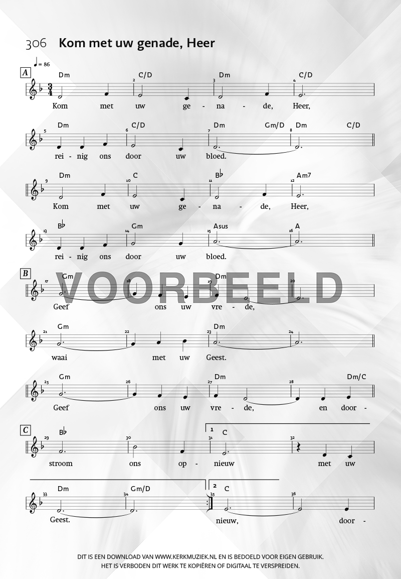 | Aanhef (eerste regel) | Kom met uw genade, Heer |
