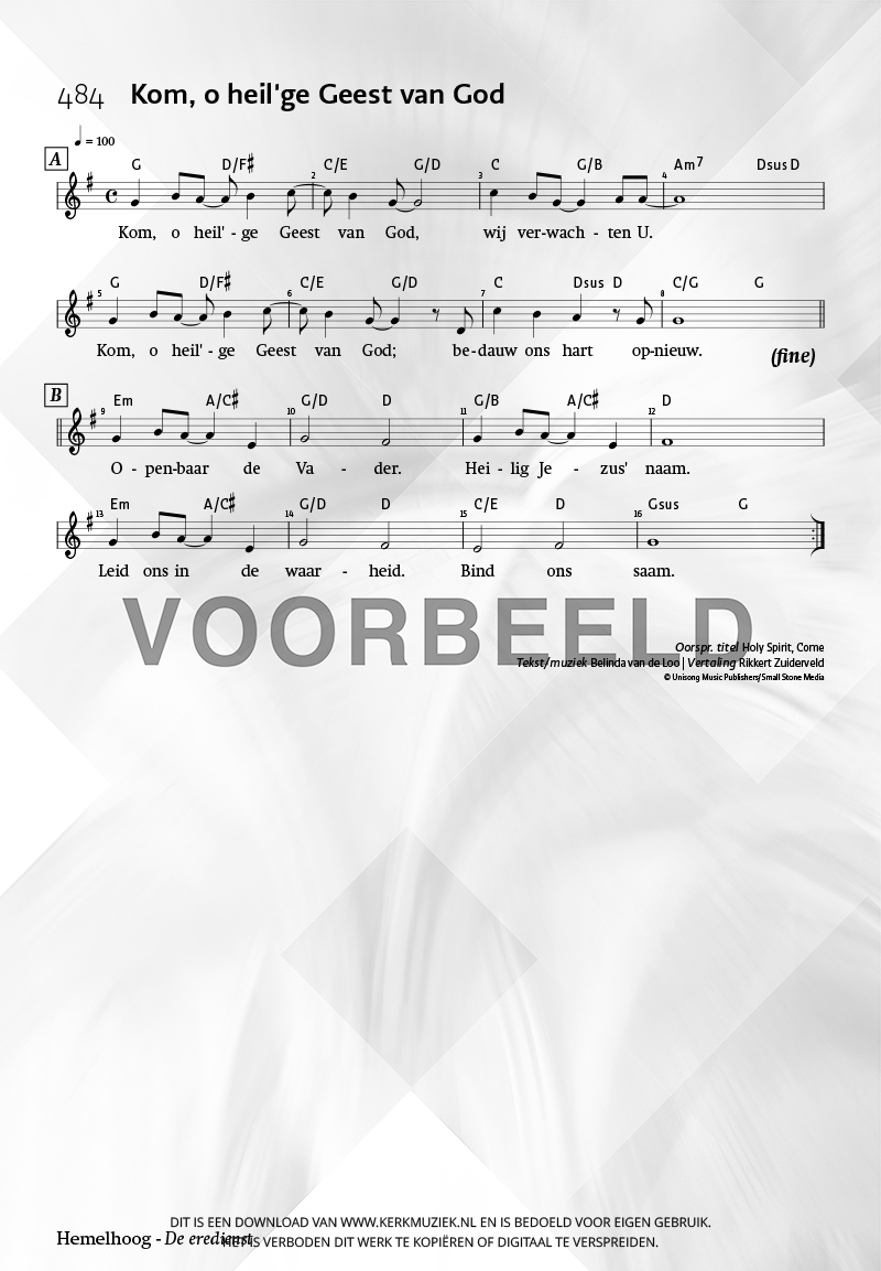 | Aanhef (eerste regel) | Kom, o heil’ge Geest van God |