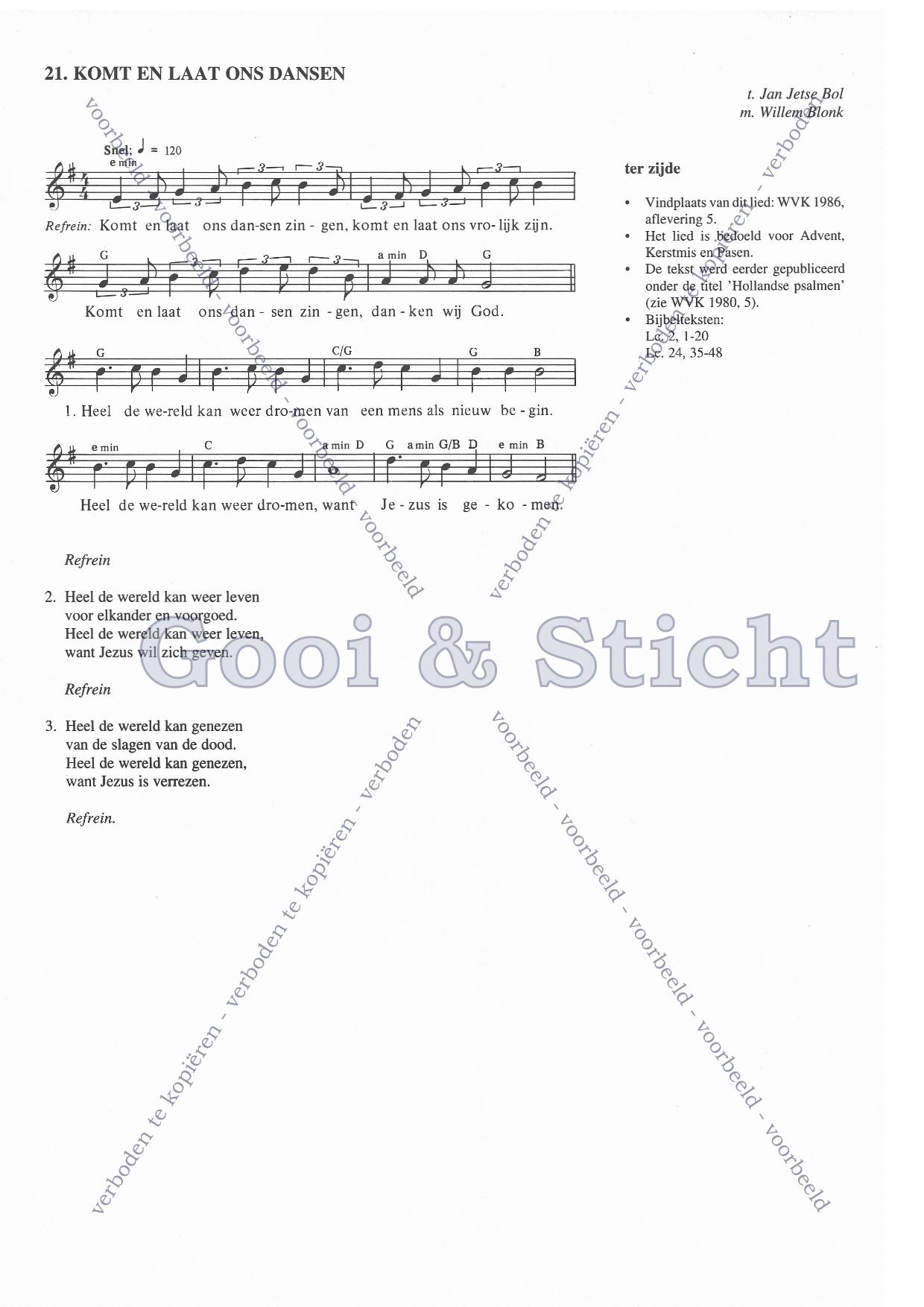 | Aanhef (eerste regel) | Komt en laat ons dansen |