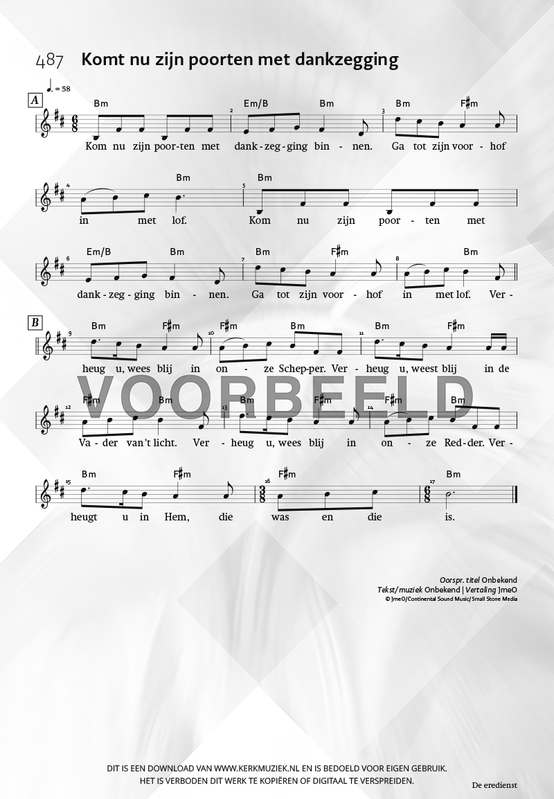 | Aanhef (eerste regel) | Komt nu zijn poorten met dankzegging |