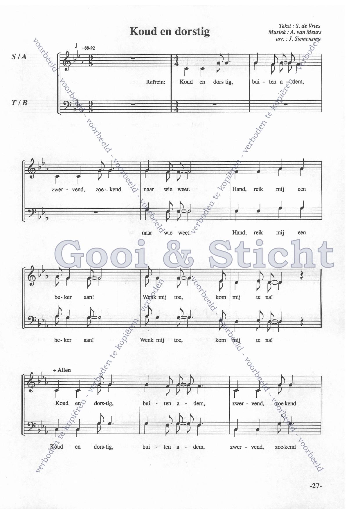 | Aanhef (eerste regel) | Koud en dorstig |