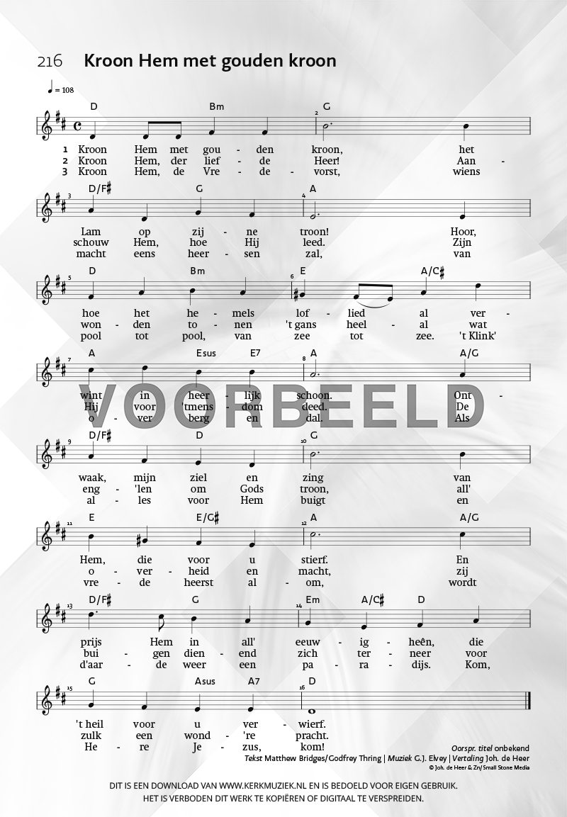 | Aanhef (eerste regel) | Kroon Hem met gouden kroon |