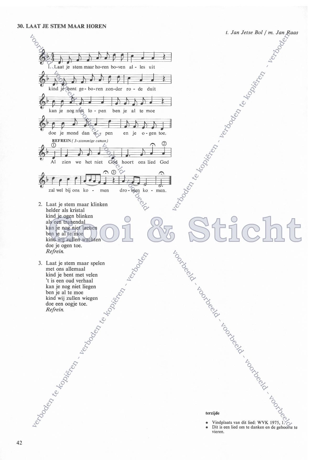| Aanhef (eerste regel) | Laat je stem maar horen |