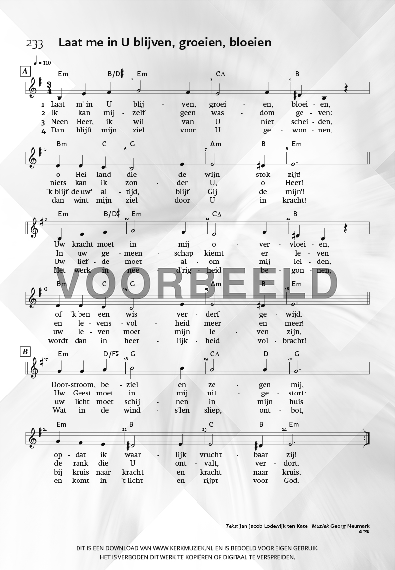 | Aanhef (eerste regel) | Laat me in U blijven, groeien, bloeien |