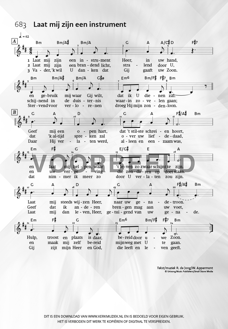 | Aanhef (eerste regel) | Laat mij zijn een instrument |