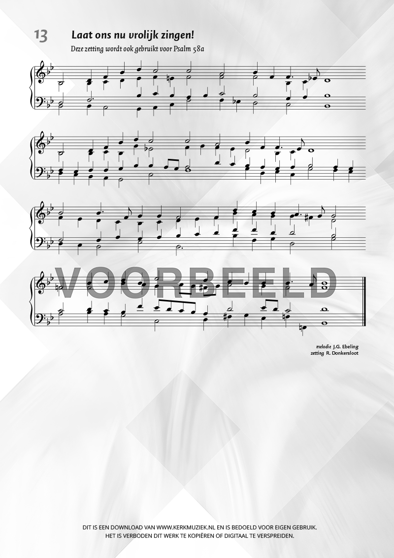 LET OP: U dient ZELF de liedbestanden te downloaden en af te drukken. Wij sturen u dus géén bladmuziek per post toe! U kunt na een geslaagde betaling direct zelf aan de slag.