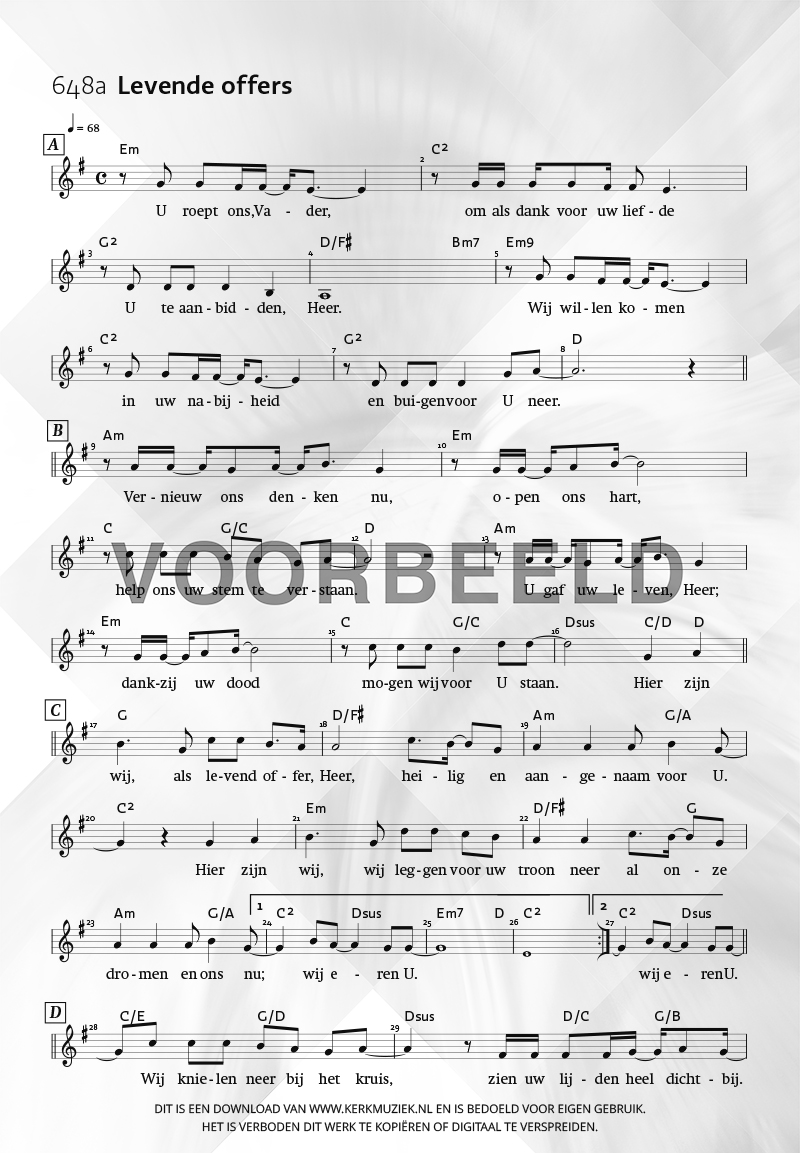 LET OP: U dient ZELF de liedbestanden te downloaden en af te drukken. Wij sturen u dus géén bladmuziek per post toe! U kunt na een geslaagde betaling direct zelf aan de slag.