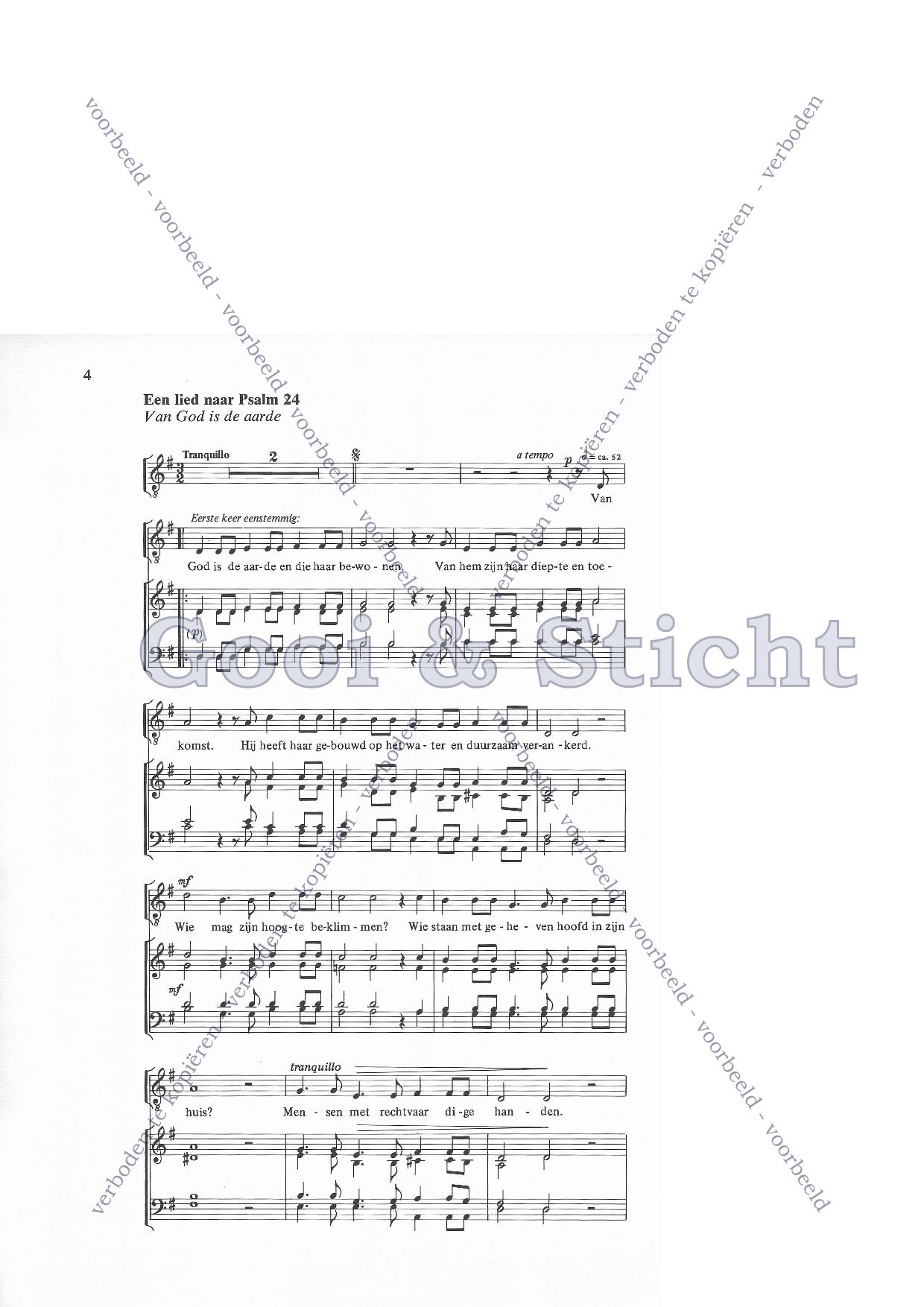| Aanhef (eerste regel) | Van god is de aarde |