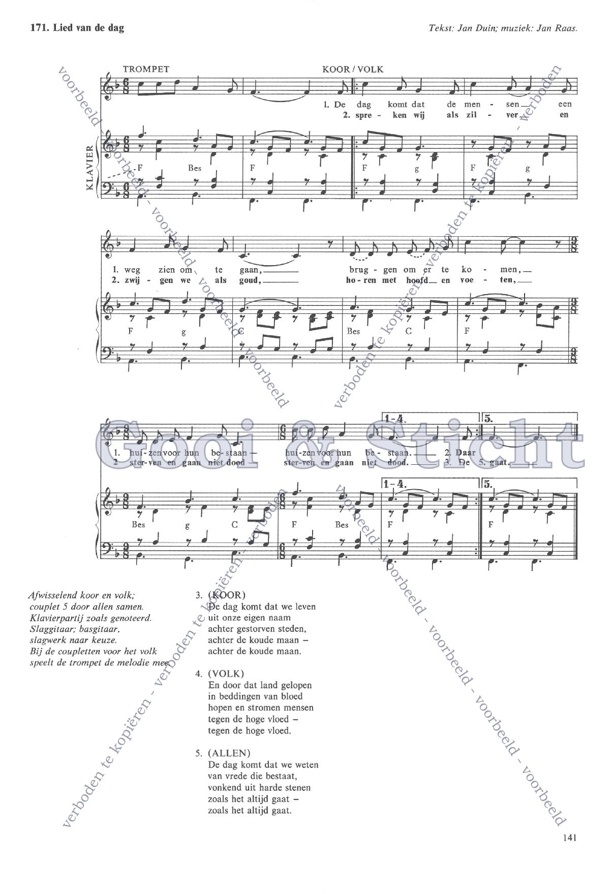 | Aanhef (eerste regel) | De dag komt dat de mensen |