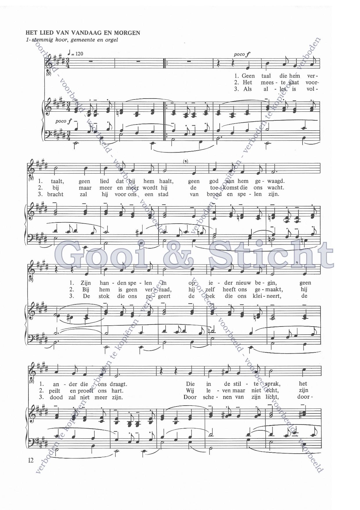 | Omschrijving | Partituur voor éénstemmig koor, gemeente en orgel |