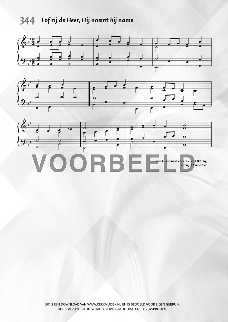 | Aanhef (eerste regel) | Lof zij de Heer, hij noemt bij name |