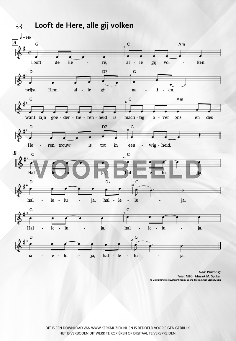 | Aanhef (eerste regel) | Looft de Here, alle gij volken |