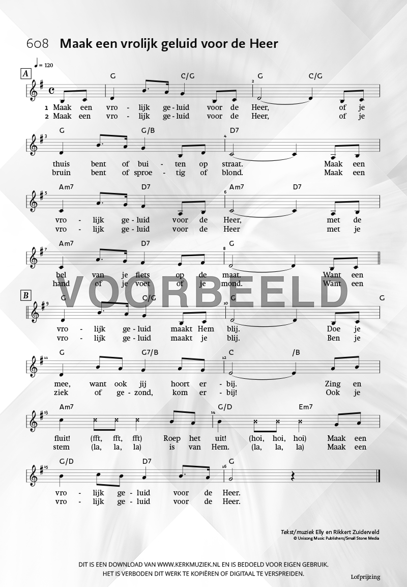 | Aanhef (eerste regel) | Maak een vrolijk geluid voor de Heer |