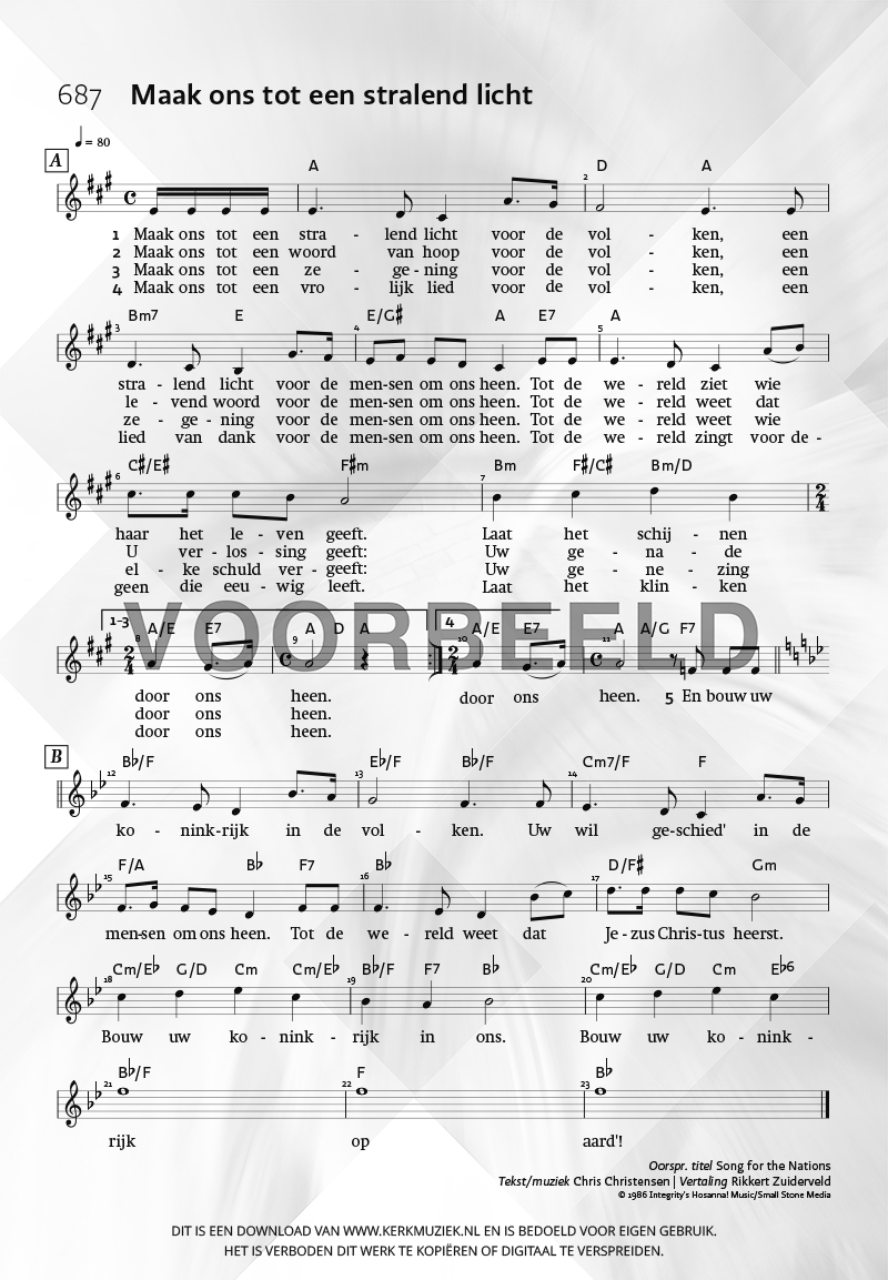 | Aanhef (eerste regel) | Maak ons tot een stralend licht |