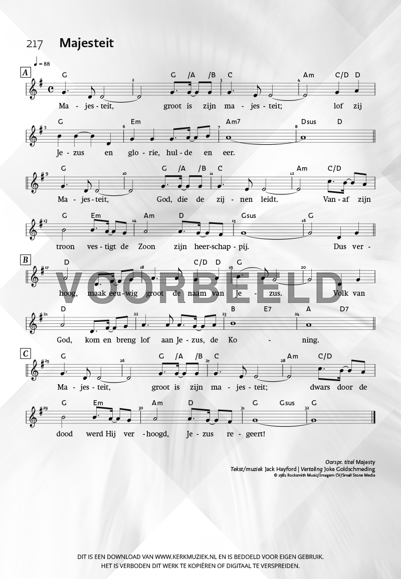 | Aanhef (eerste regel) | Majesteit, groot is zijn majesteit |