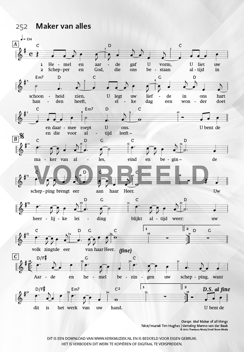 | Omschrijving | Leadsheet - melodie met gitaarakkoorden |