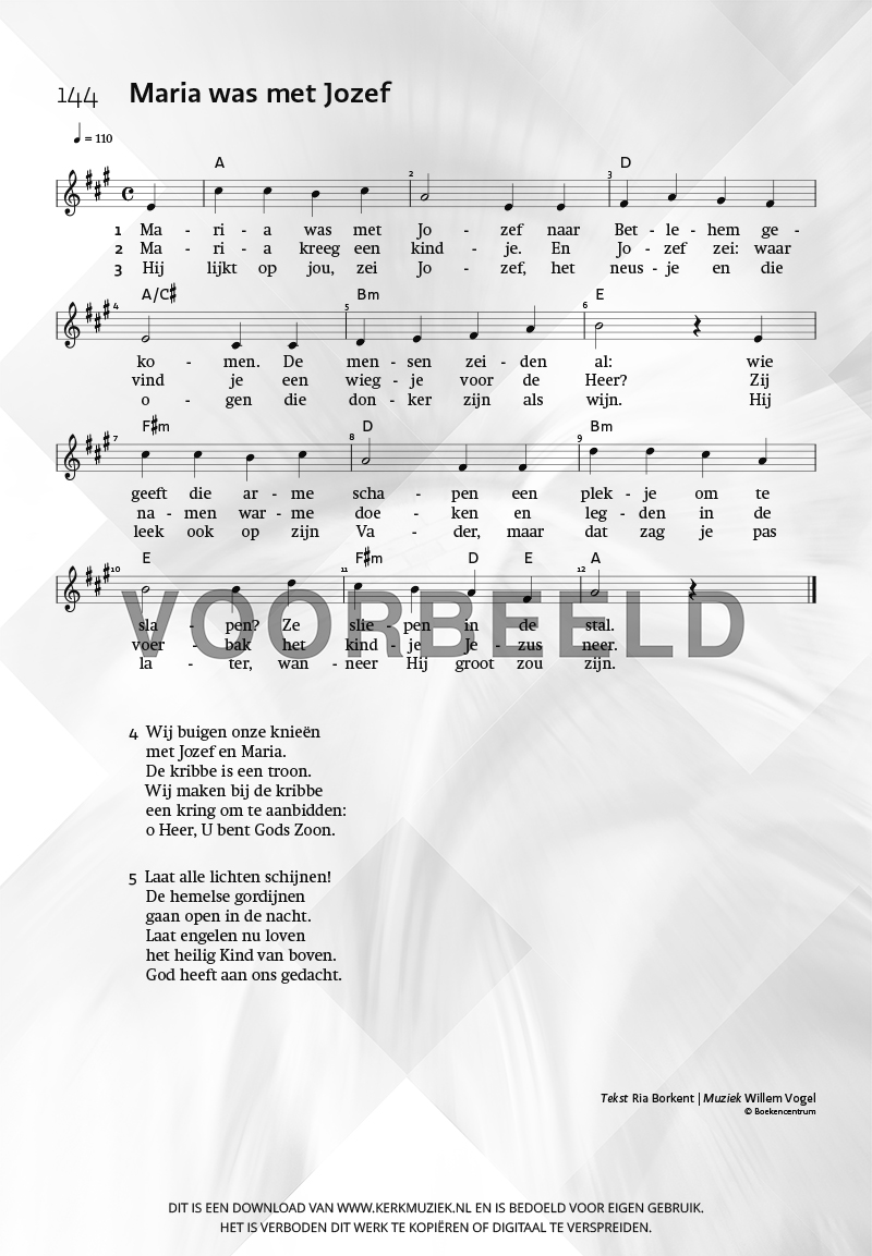 | Aanhef (eerste regel) | Maria was met Jozef |