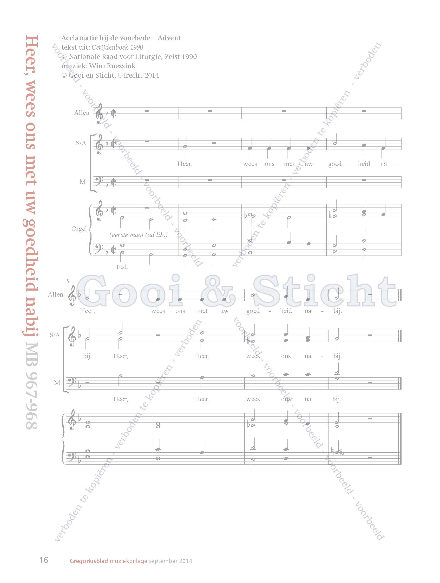 | Omschrijving | Partituur voor driestemmig gemengd koor, gemeente en orgel |