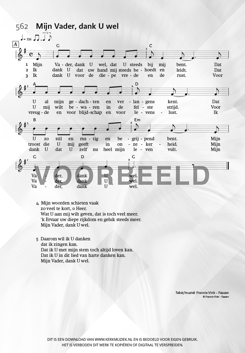| Aanhef (eerste regel) | Mijn Vader, dank U wel |