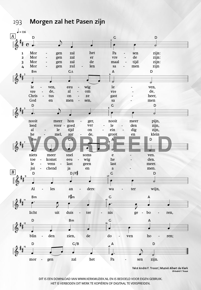 | Aanhef (eerste regel) | Morgen zal het Pasen zijn |