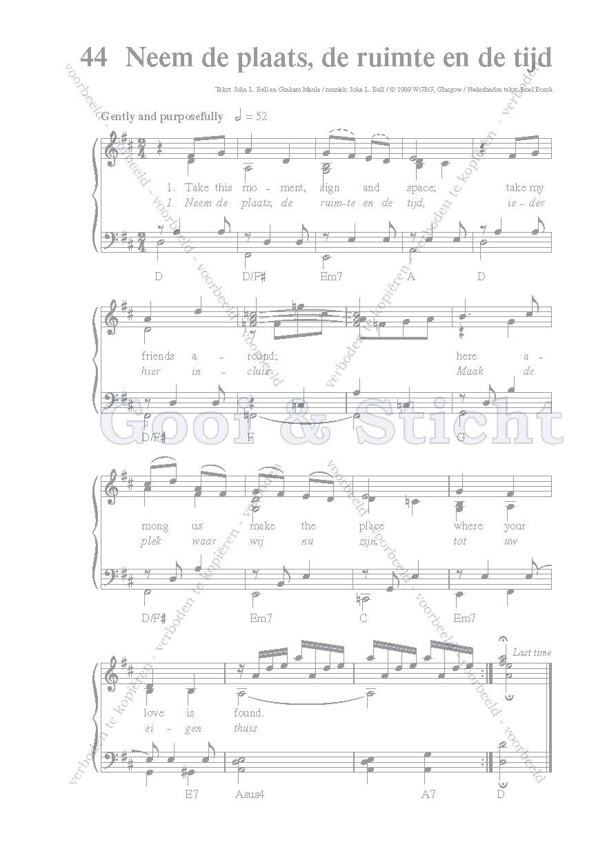 | Aanhef (eerste regel) | Neem de plaats, de ruimte en de tijd |