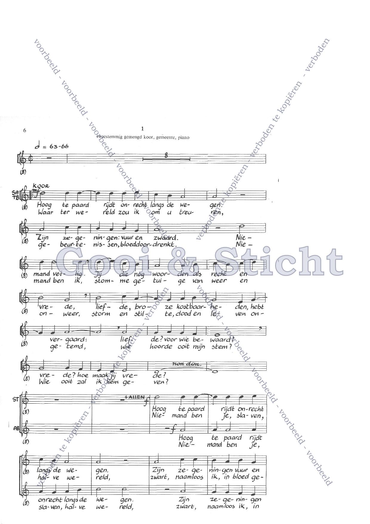 | Aanhef (eerste regel) | Hoog te paard rijdt onrecht langs de wegen |