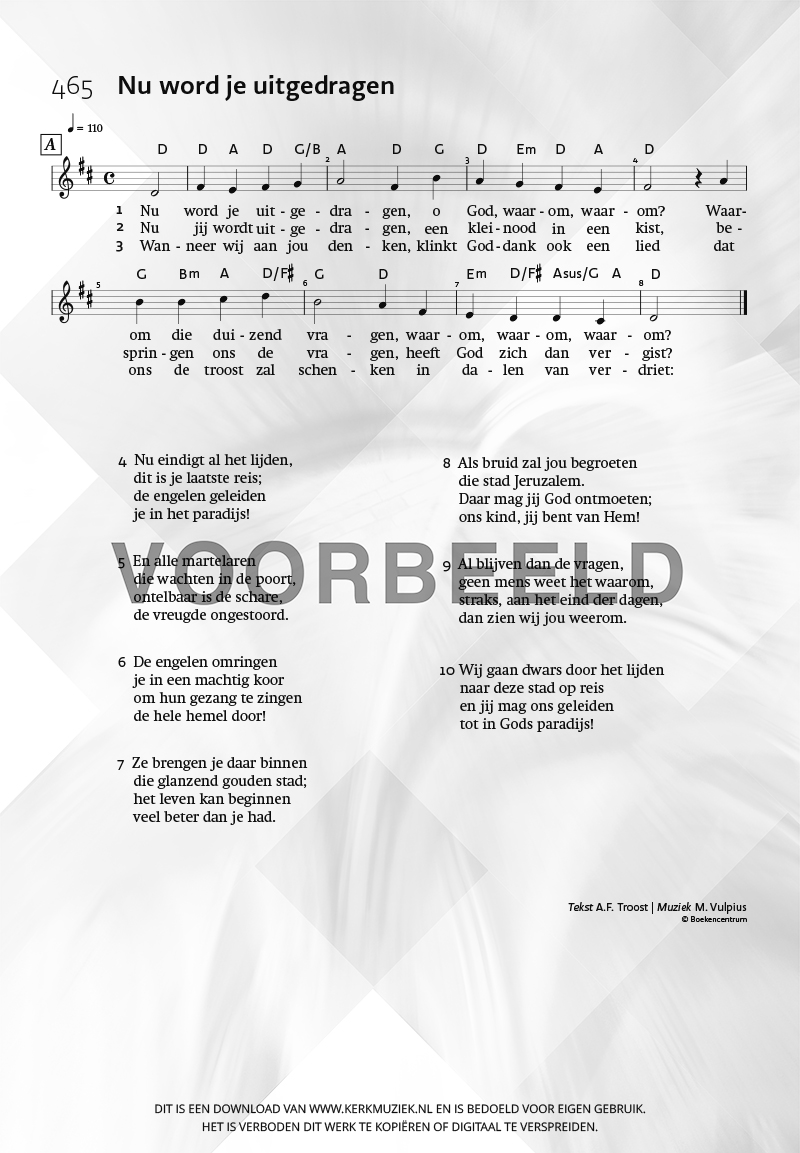 | Aanhef (eerste regel) | Nu word je uitgedragen |