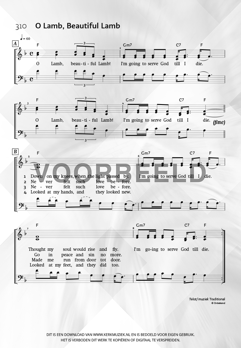 | Aanhef (eerste regel) | O Lamb, Beautiful Lamb |