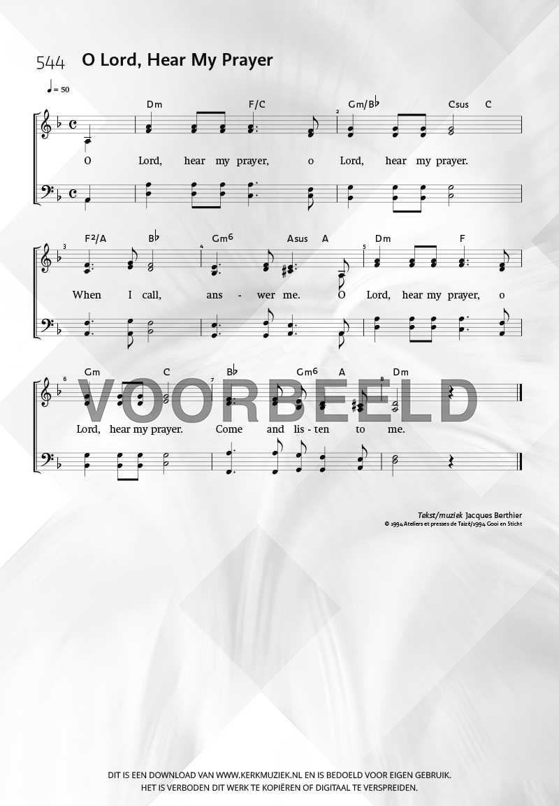 | Aanhef (eerste regel) | O Lord, Hear My Prayer |