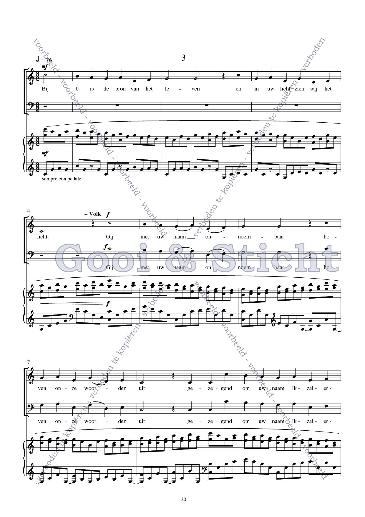 | Omschrijving | Partituur voor vierstemmig gemengd koor, gemeente, fluit en piano |