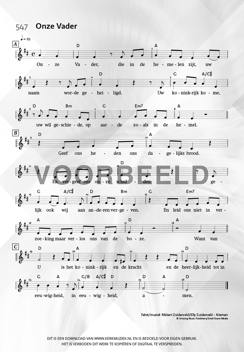 | Aanhef (eerste regel) | Onze Vader |
