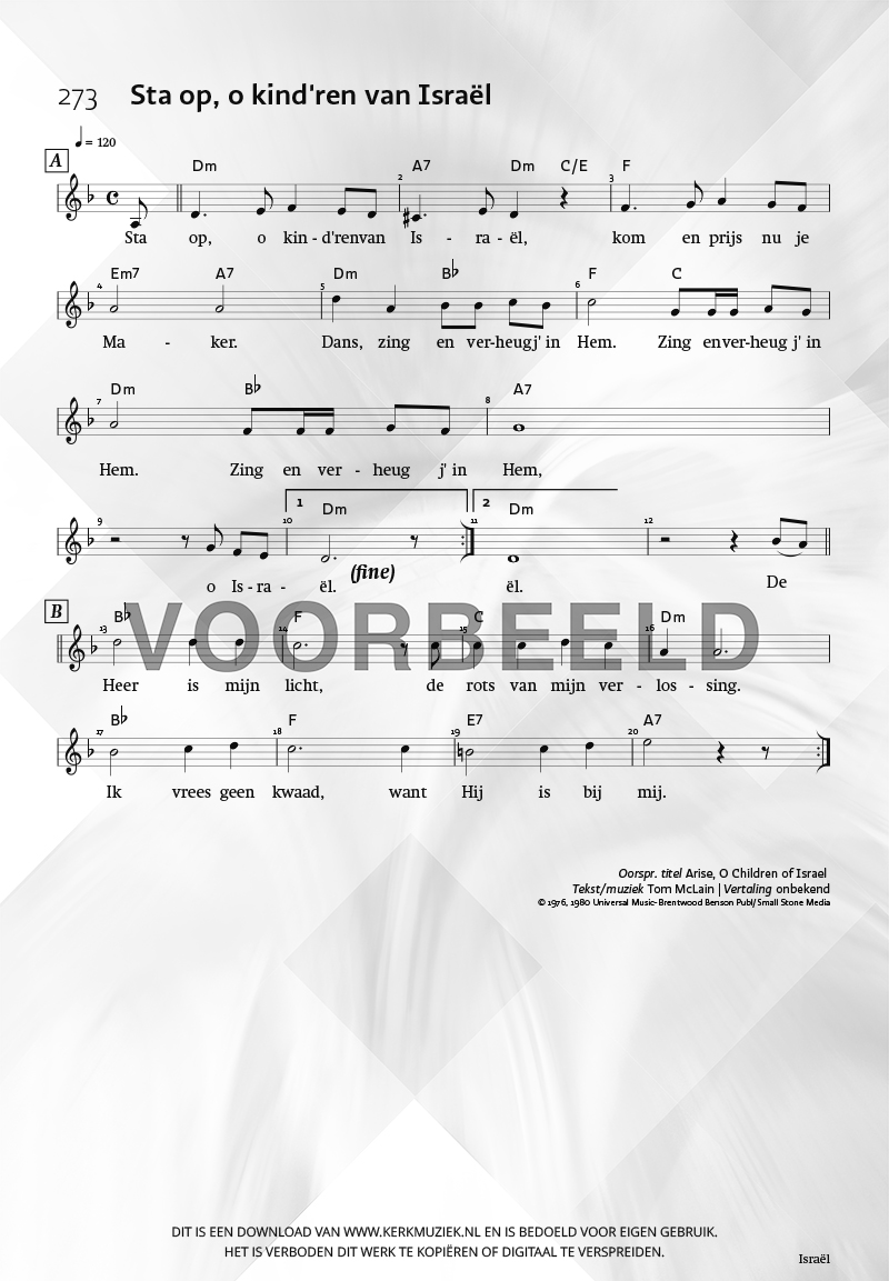 | Aanhef (eerste regel) | Sta op, o kind’ren van Israël |