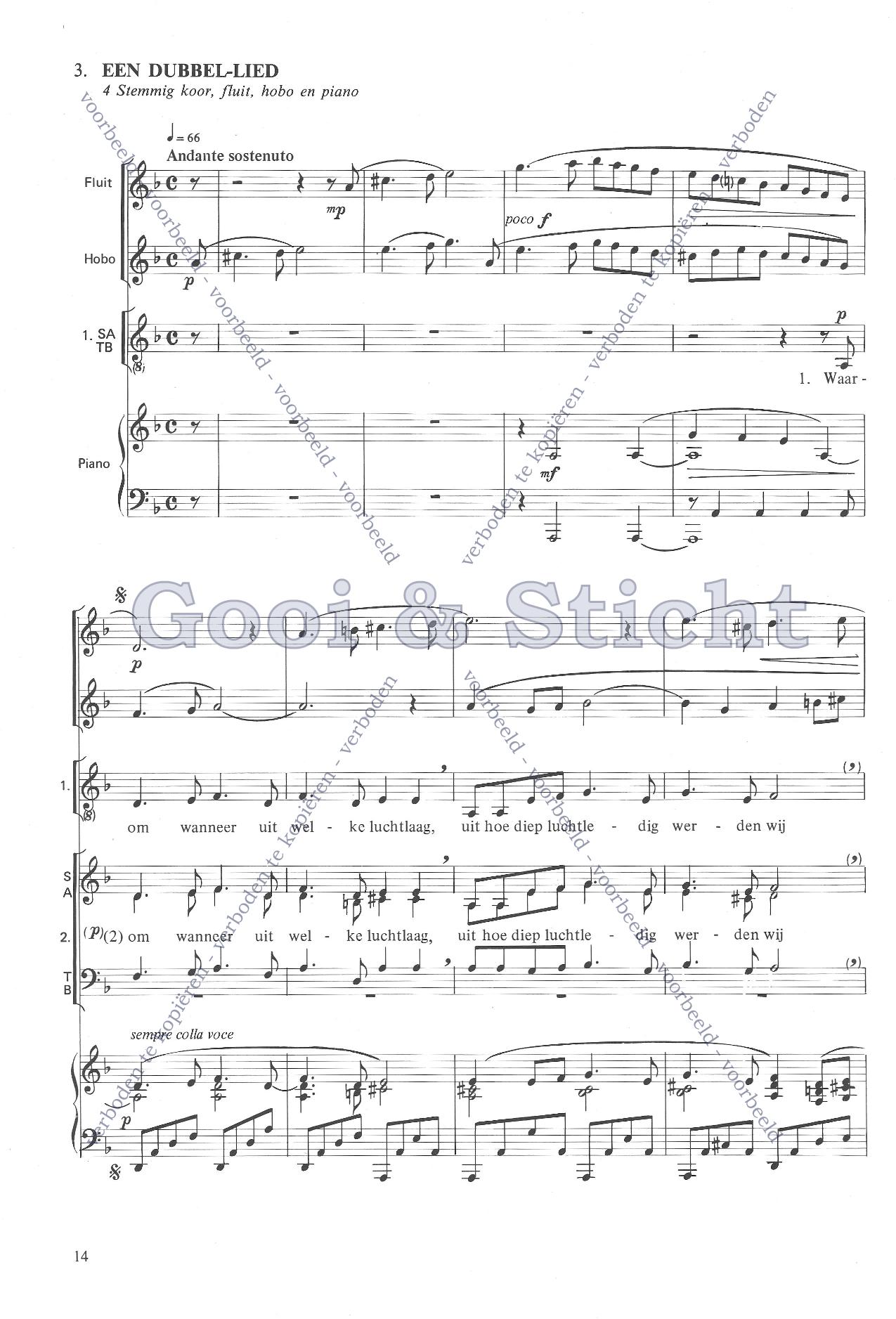 | Omschrijving | Partituuruitgave voor vierstemmig koor, gemeente, fluit, hobo en piano |