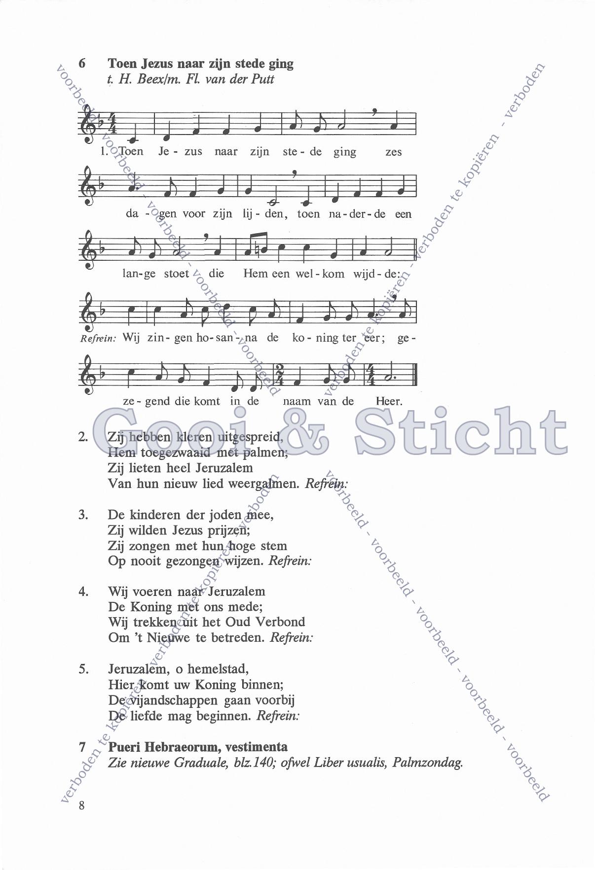 | Refrein | Wij zingen hosanna de koning ter eer |