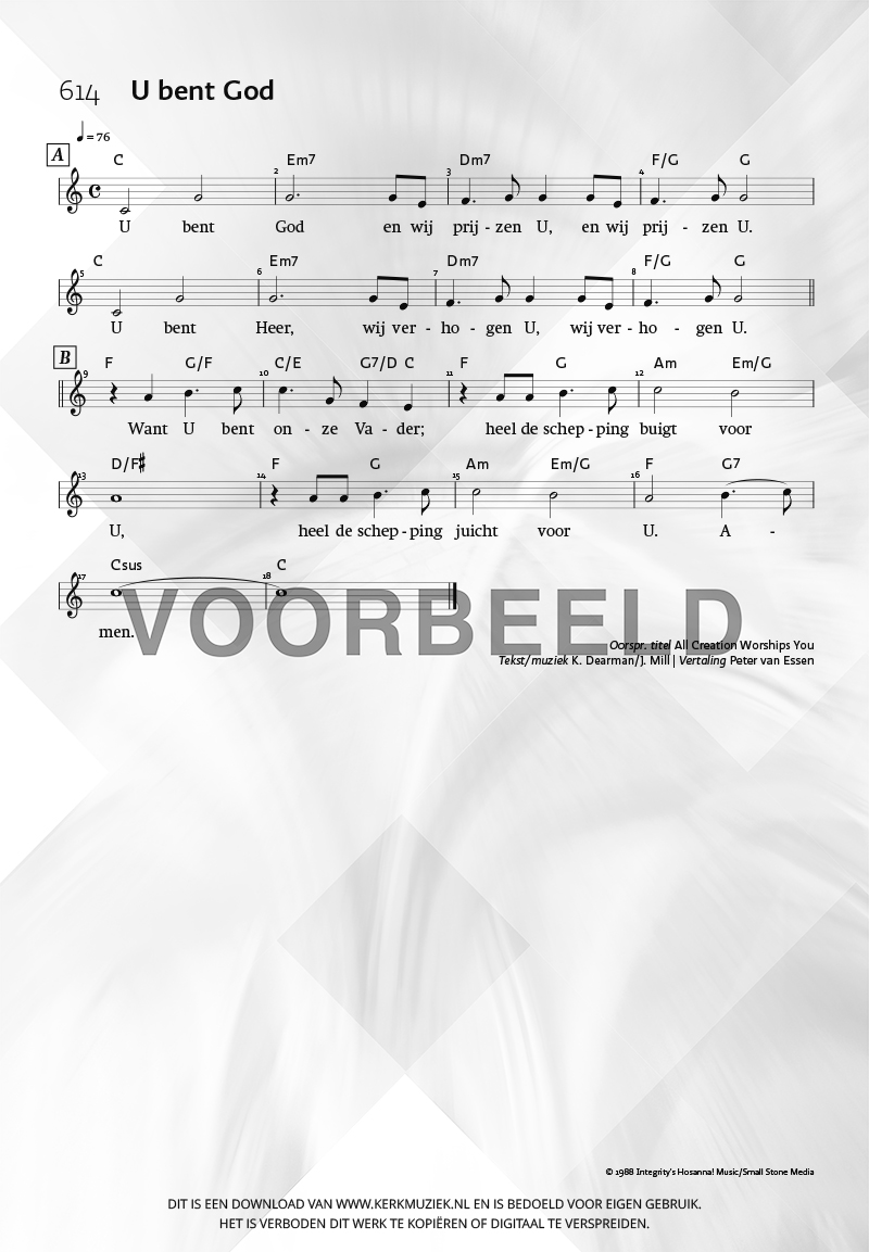 | Aanhef (eerste regel) | U bent God |