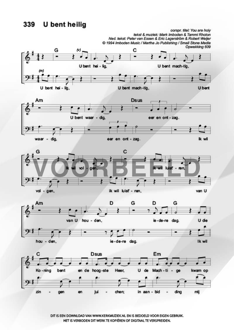 | Aanhef (eerste regel) | U bent heilig |