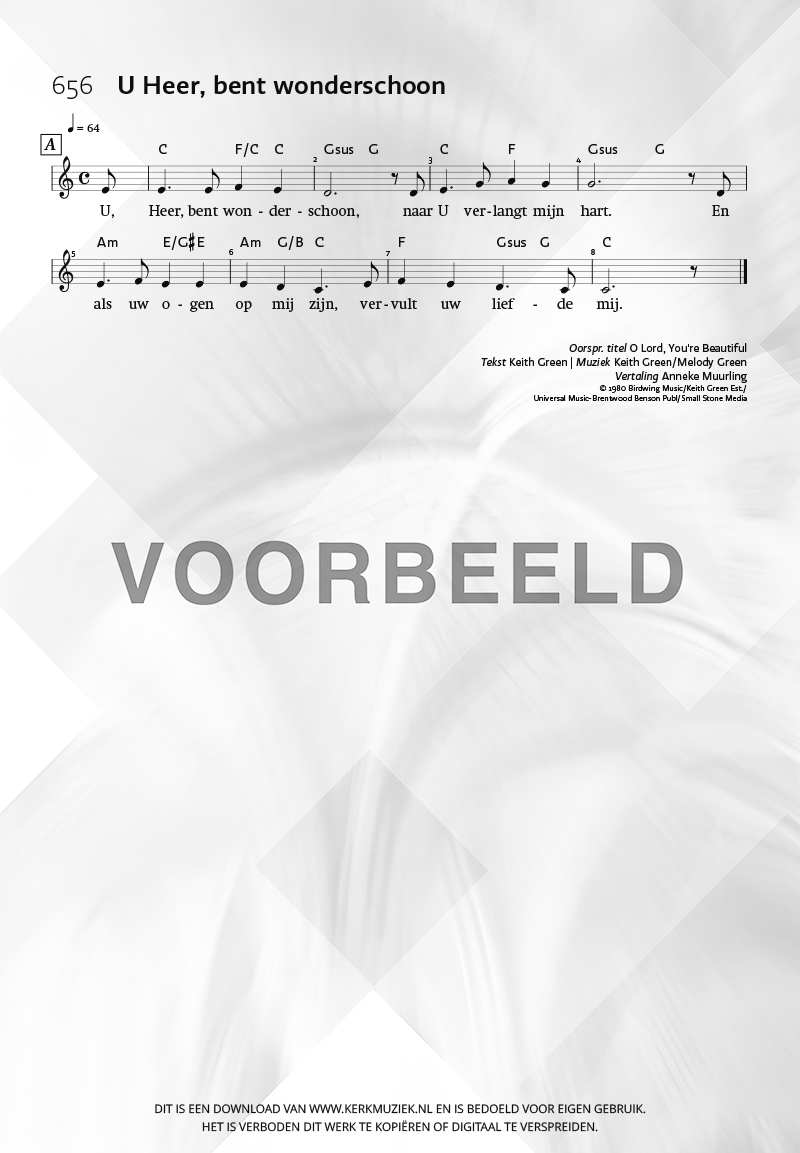 | Aanhef (eerste regel) | U Heer, bent wonderschoon |