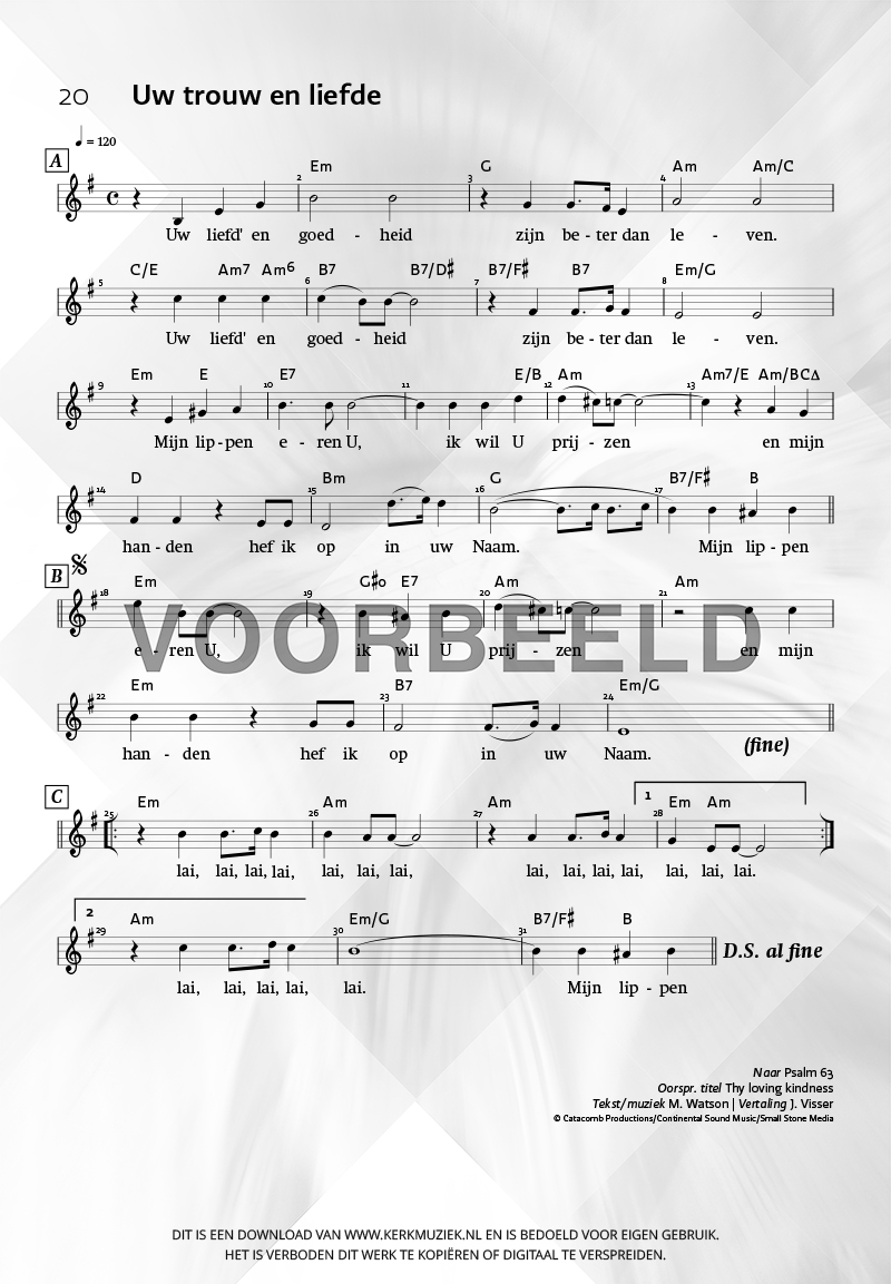 | Omschrijving | Leadsheet - melodie met gitaarakkoorden |