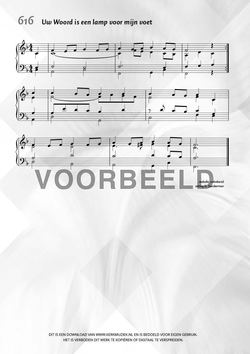 | Aanhef (eerste regel) | Uw Woord is een lamp voor mijn voet |