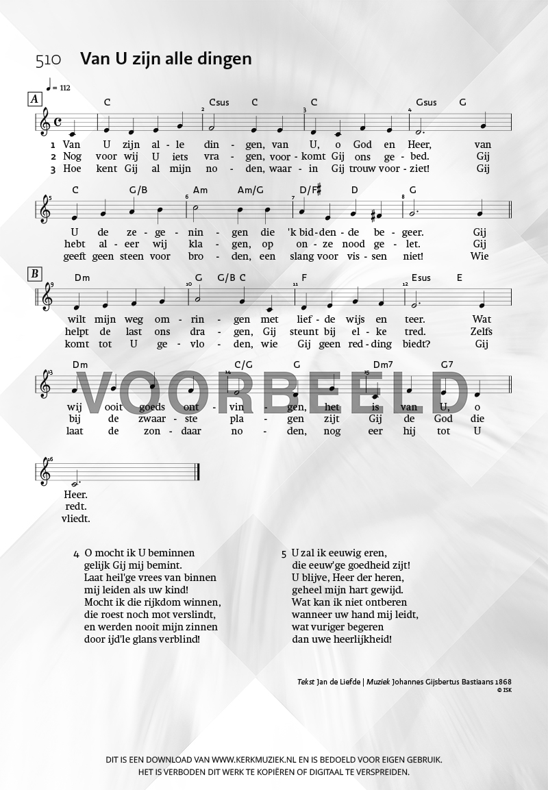 | Aanhef (eerste regel) | Van U zijn alle dingen |