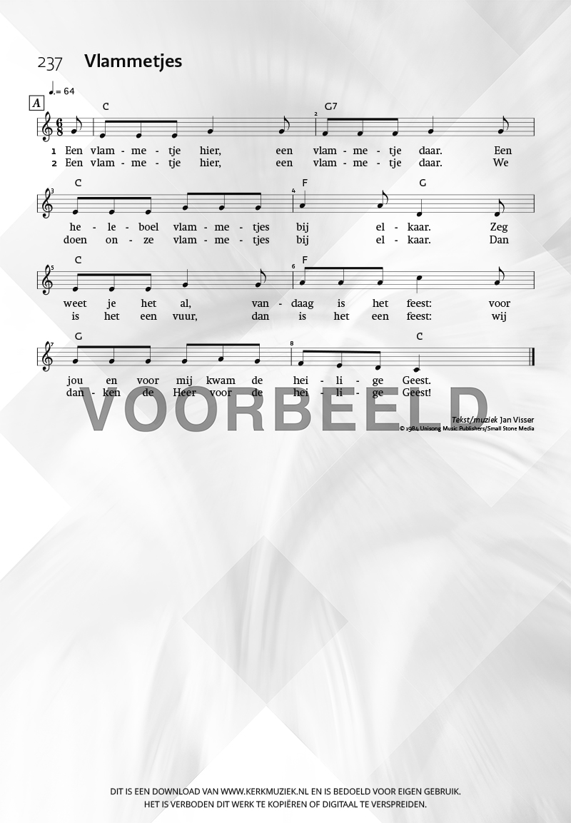 LET OP: U dient ZELF de liedbestanden te downloaden en af te drukken. Wij sturen u dus géén bladmuziek per post toe! U kunt na een geslaagde betaling direct zelf aan de slag.