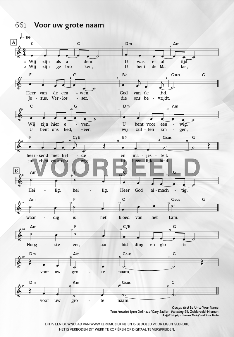 LET OP: U dient ZELF de liedbestanden te downloaden en af te drukken. Wij sturen u dus géén bladmuziek per post toe! U kunt na een geslaagde betaling direct zelf aan de slag.