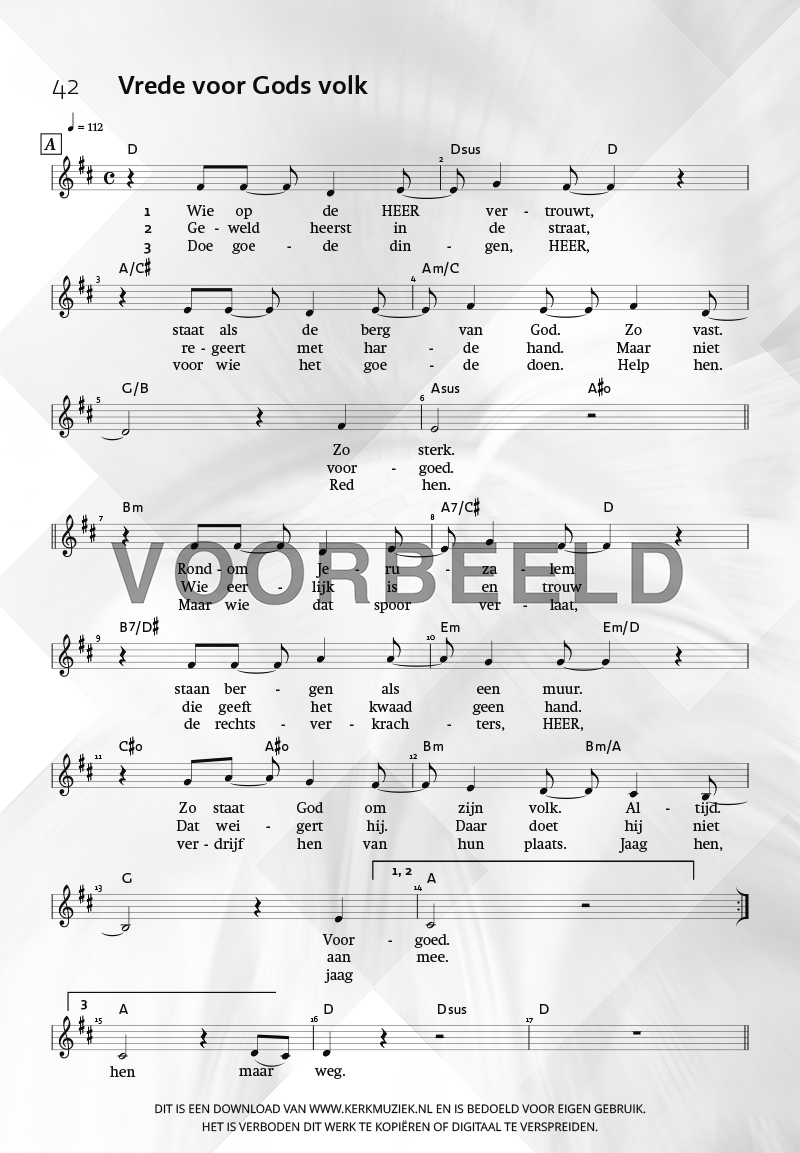 | Aanhef (eerste regel) | Wie op de Heer vertrouwt |