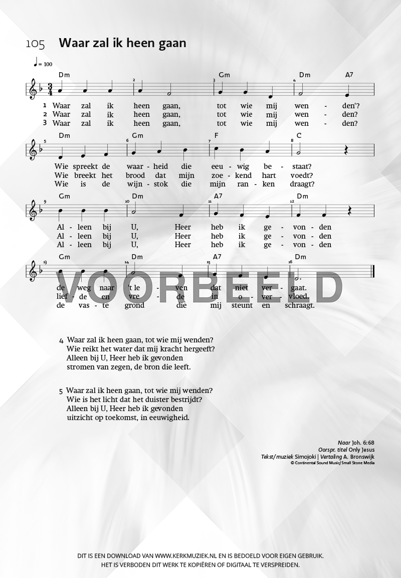 | Aanhef (eerste regel) | Waar zal ik heen gaan |