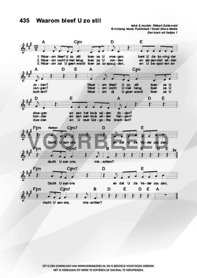 LET OP: U dient ZELF de liedbestanden te downloaden en af te drukken. Wij sturen u dus géén bladmuziek per post toe! U kunt na een geslaagde betaling direct zelf aan de slag.